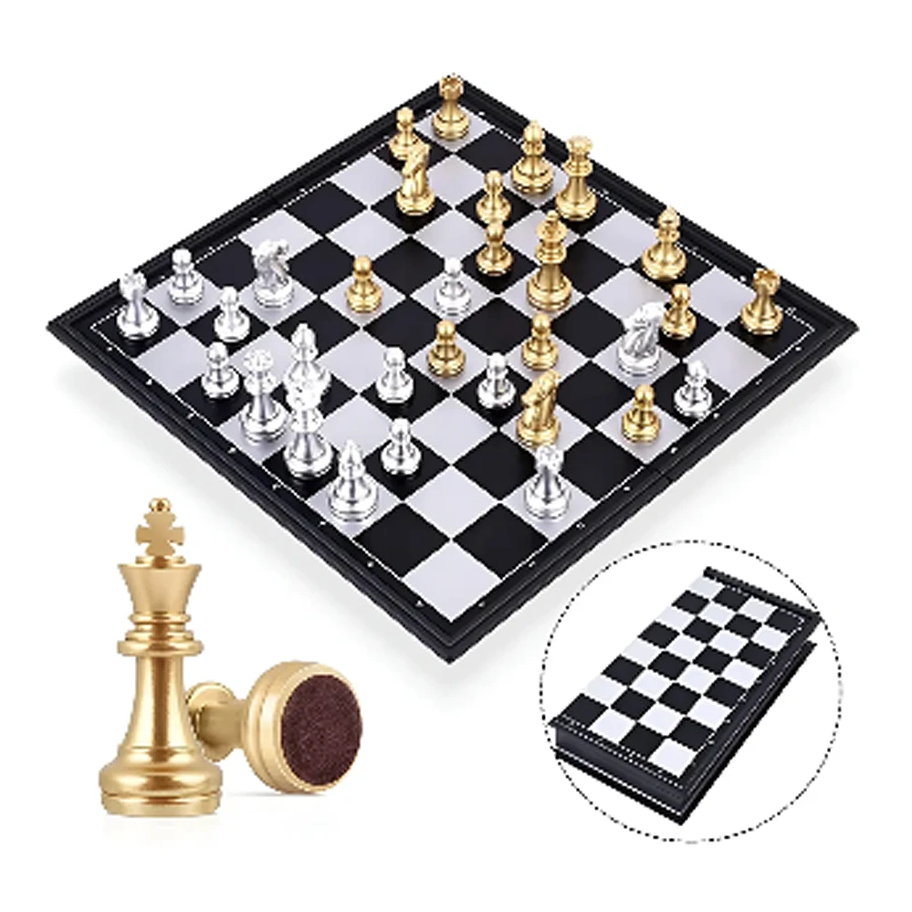 Ajedrez magnético Con Fichas color metalizado de excelente material sintético, muy resistente, con un excelente acabado y un instructivo básico sobre el movimiento de las fichas. Medidas cerrado: Largo 20 cms. Ancho 10 cms. Alto 3 cms.  Te esperamos!!!