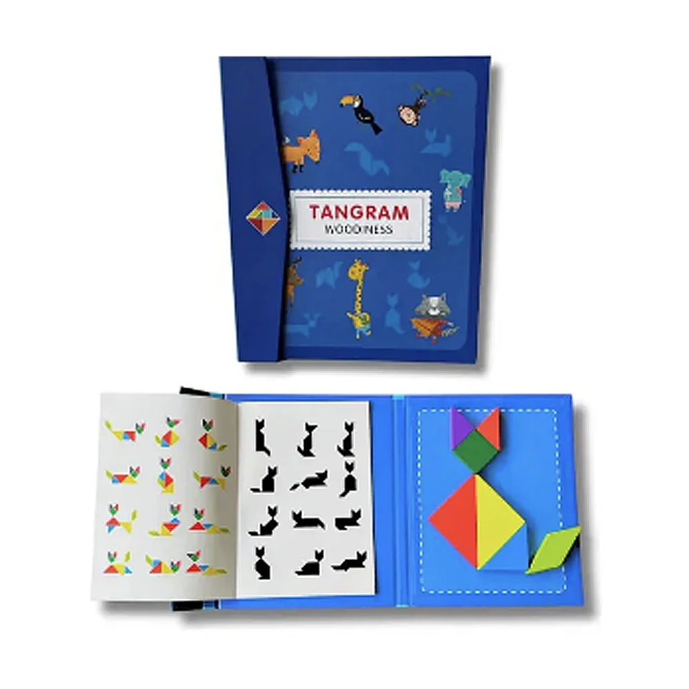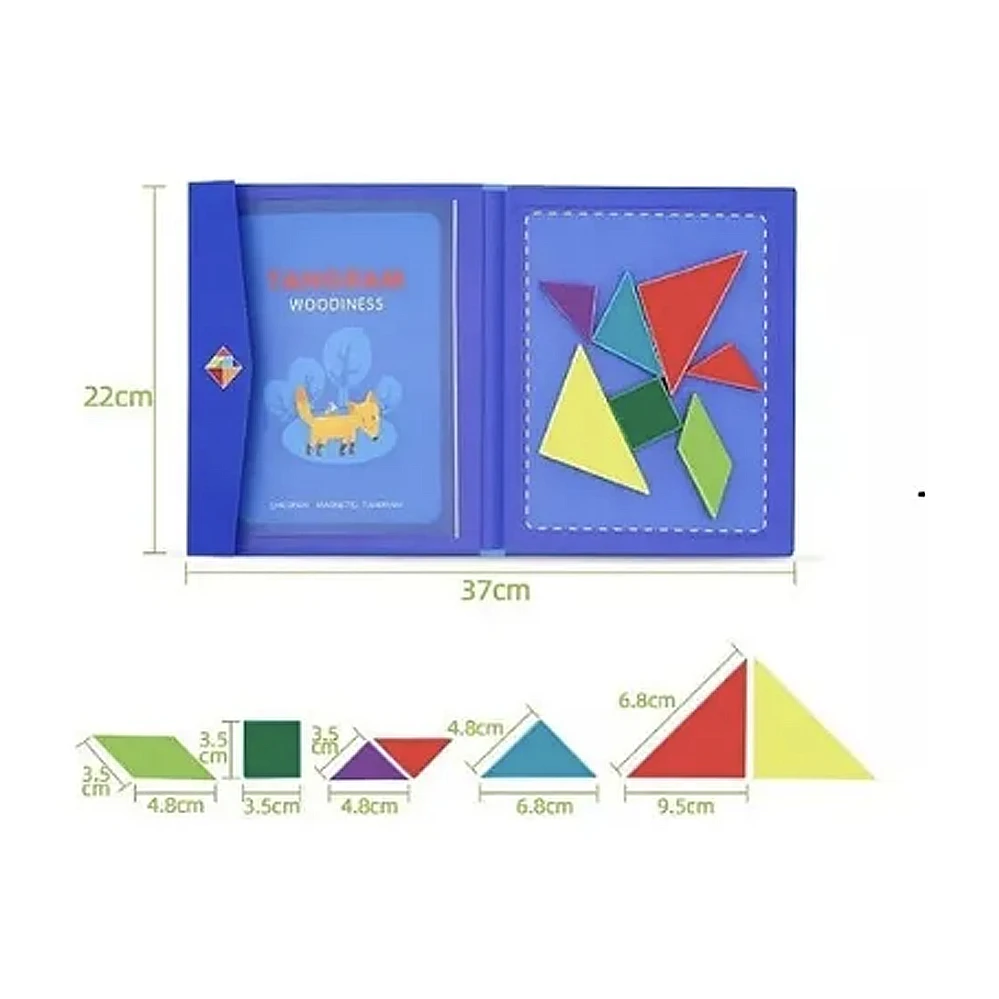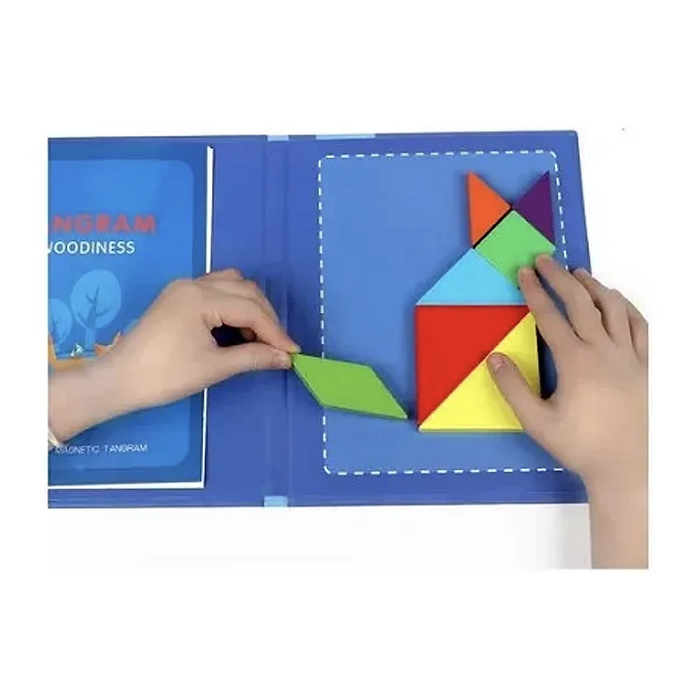 El tangram puzzles infantil incluye 7 pequeñas placas magnéticas simples y coloridas que pueden crear patrones de imagen fáciles o difíciles en constante cambio. Es un juego realmente divertido y educativo para inspirar la inteligencia y la imaginación de los niños. Material seguro y diseño: el puzzles de madera está hecho de material ambiental y no tóxico. Las piezas están bien pintadas, sin tener un olor terrible, y tienen un borde suave que no lastiman la piel de los bebés. Los7 colores y 7 formas construyen un mundo hermoso para sus hijos. Patrones y solución: el divertido juguete educativo contiene patrones y soluciones diferentes, incluyendo animales, personas, objetos, barcos y figuras geométricas que pueden ayudar a los niños a captar patrones concretos, formas abstractas y geométricas y tamaños. La prueba de patten varía en dificultad, lo que significa que tanto los niños como los adultos pueden jugar, y los niños definitivamente pueden crecer con esto. Juego de viaje: Le bloque de madera regalo tiene la versión recientemente diseñada y mejorada del original. Hay menos posibilidad de desorden o pérdida gracias al diseño magnético del libro. Un tamaño agradable y la opción ideal de juego de viaje para sus pequeños. Te esperamos!!!