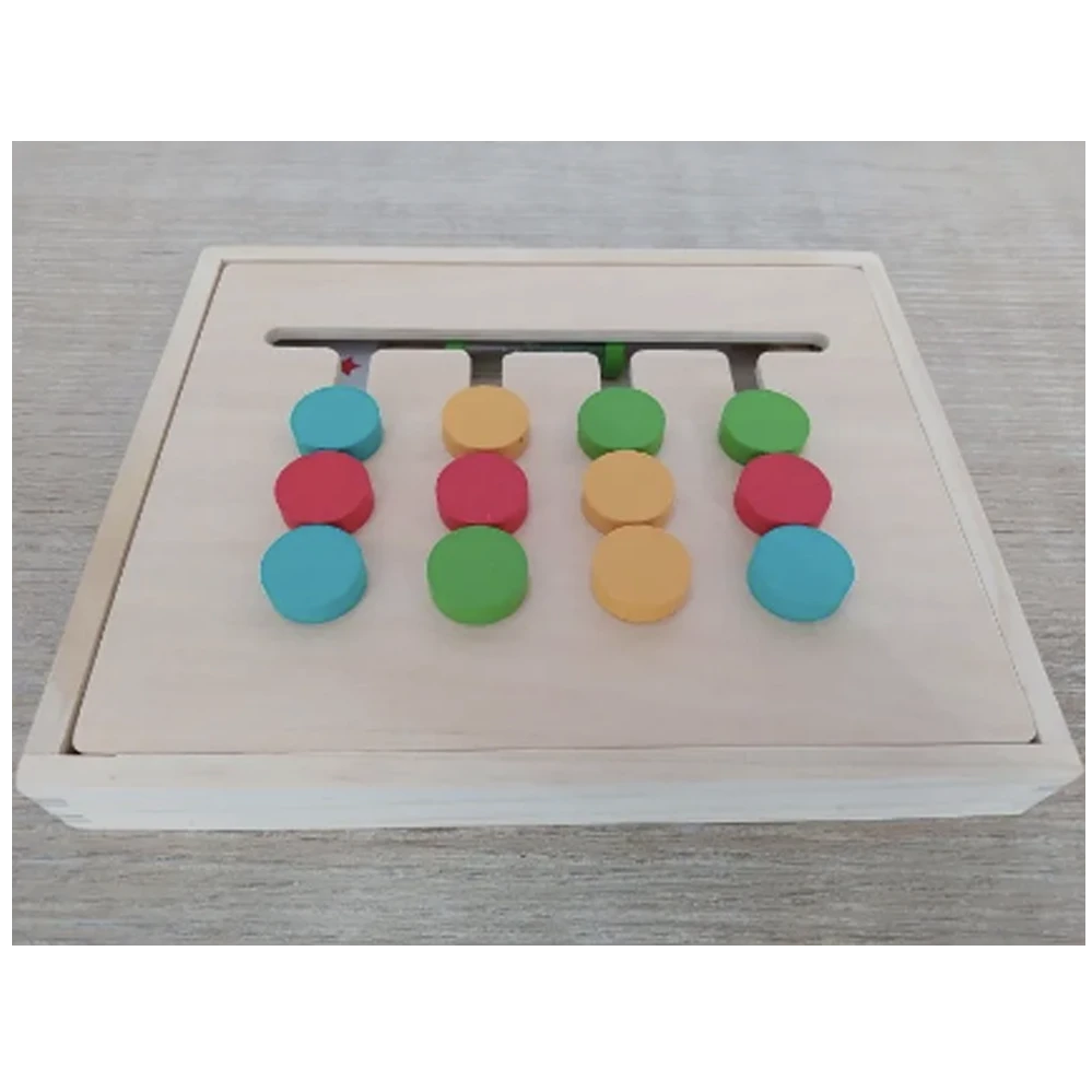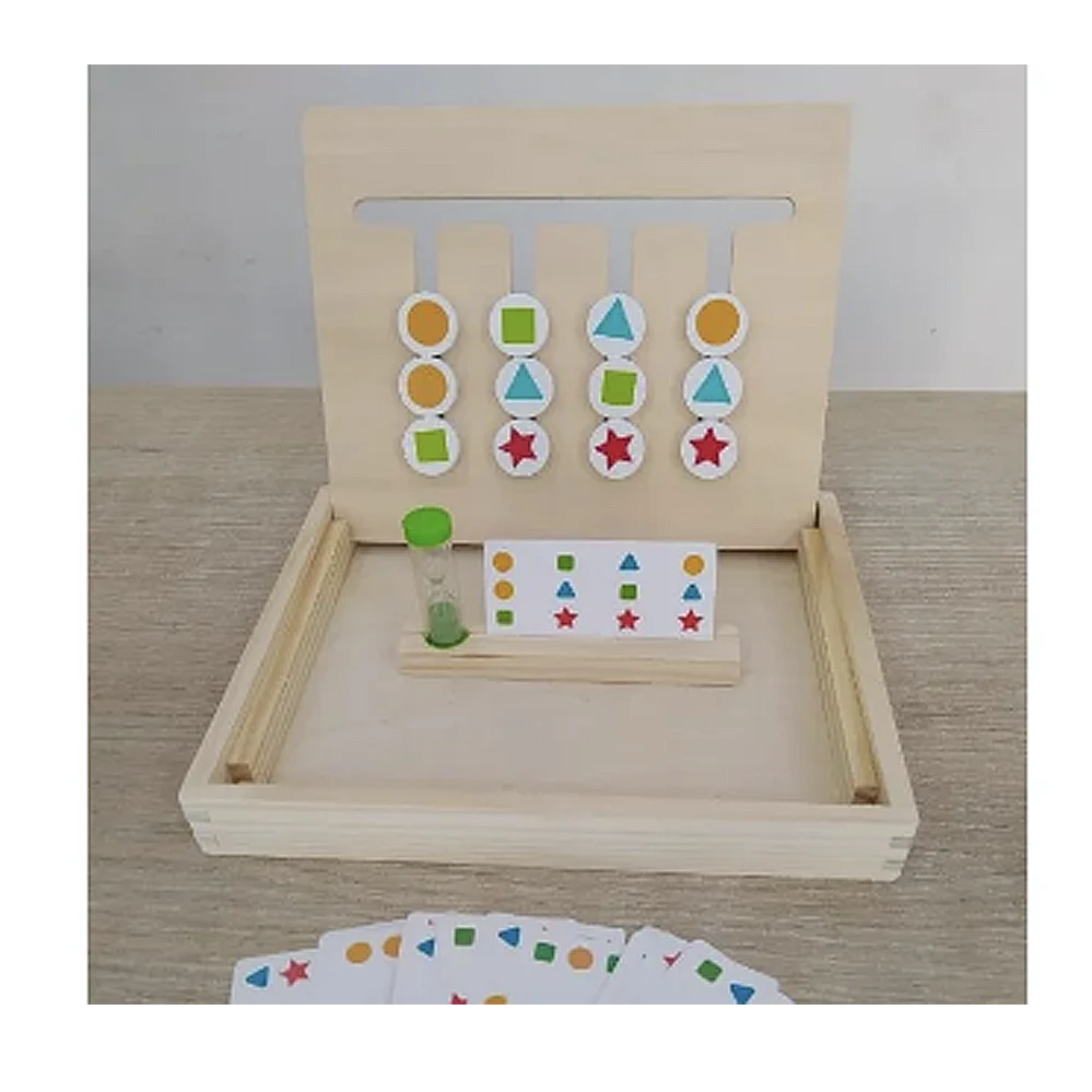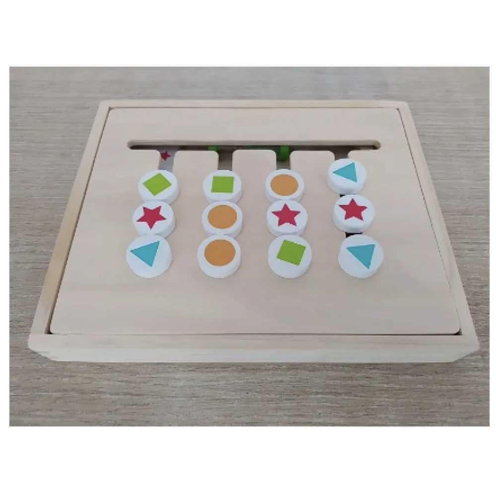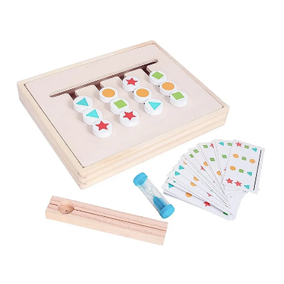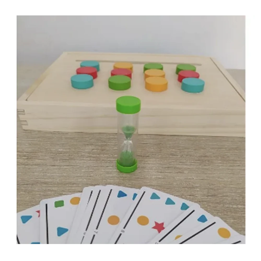 Juego de niveles con doble función, por un lado se pueden armar secuencias de colores y por el otro lado se pueden armar secuencias de figuras, incluye 18 tarjetas numeradas del 1 al 18 por cada lado, a medida que se avanza en el número de la tarjeta, se avanza en la dificultad de forma ascendente. MEDIDAS cerrado: Largo 24 cms, Ancho 19 cms, Alto 3 cms. Te esperamos!!!
