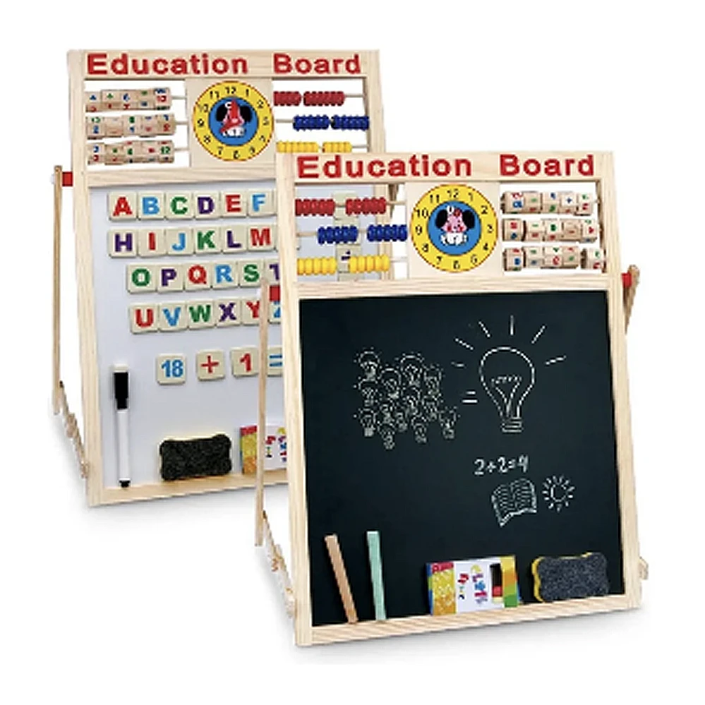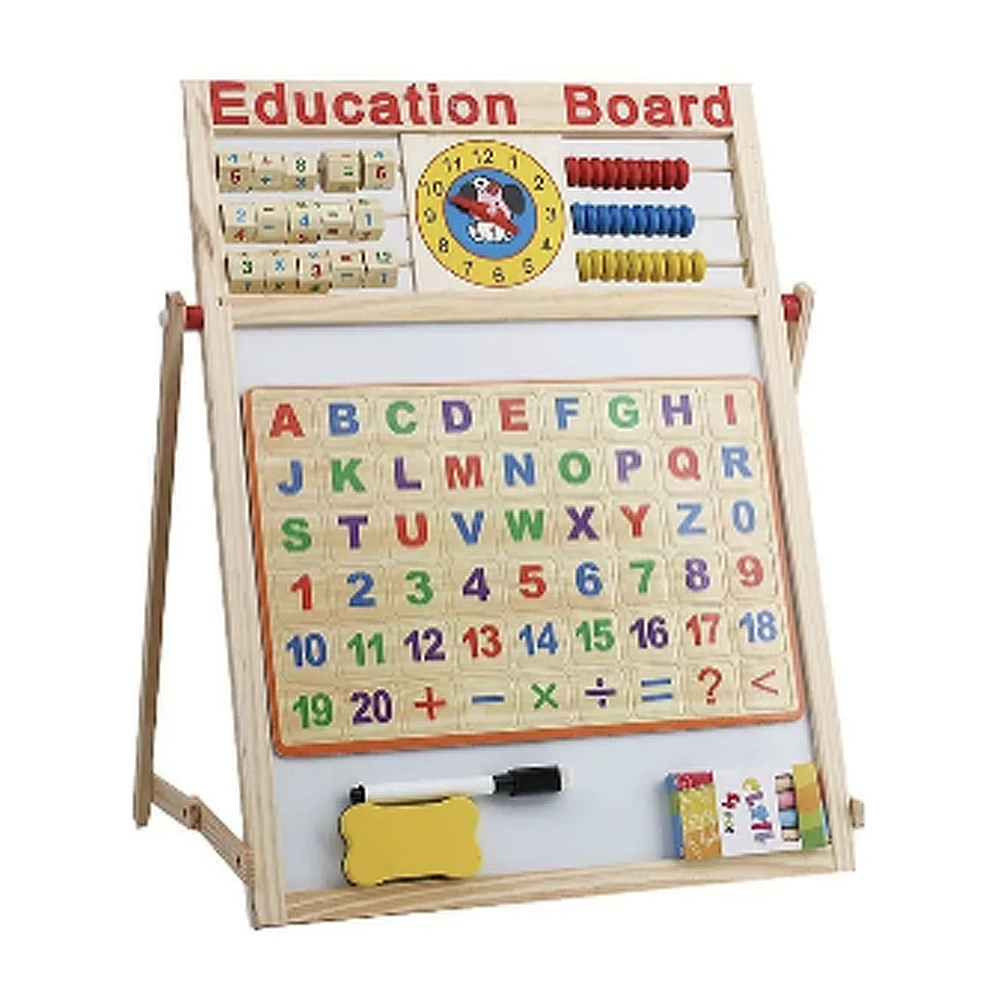 Tablero magnético plegable que incluye el abecedario, números y signos matemáticos básicos, también magnético. Por una cara trae pizarra para tizas y por la otra, trae tablero acrílico, incluye tizas, marcador borrable y sus respectivos borradores. Te esperamos!!!