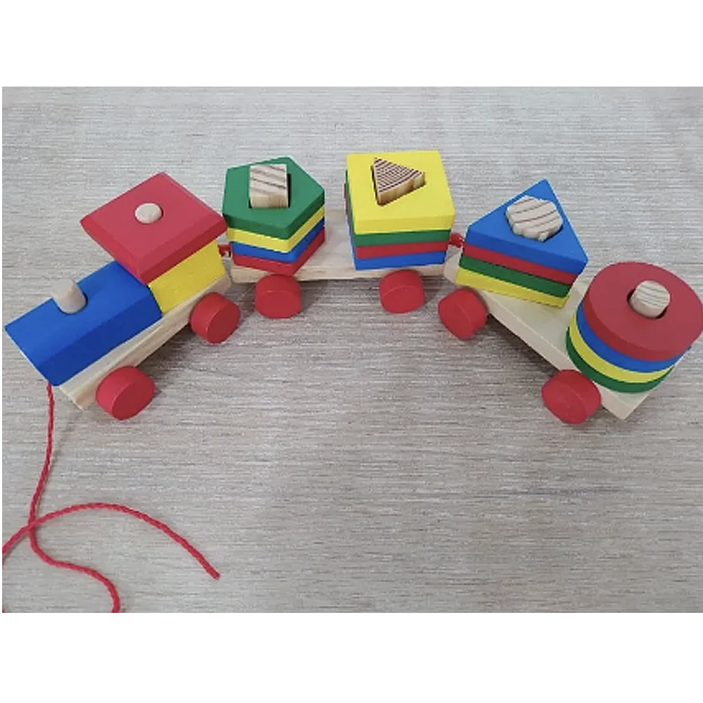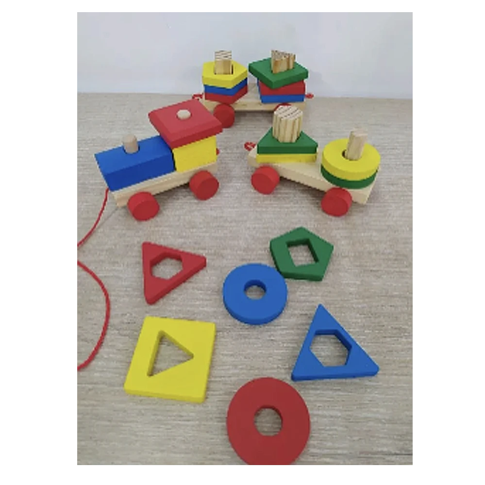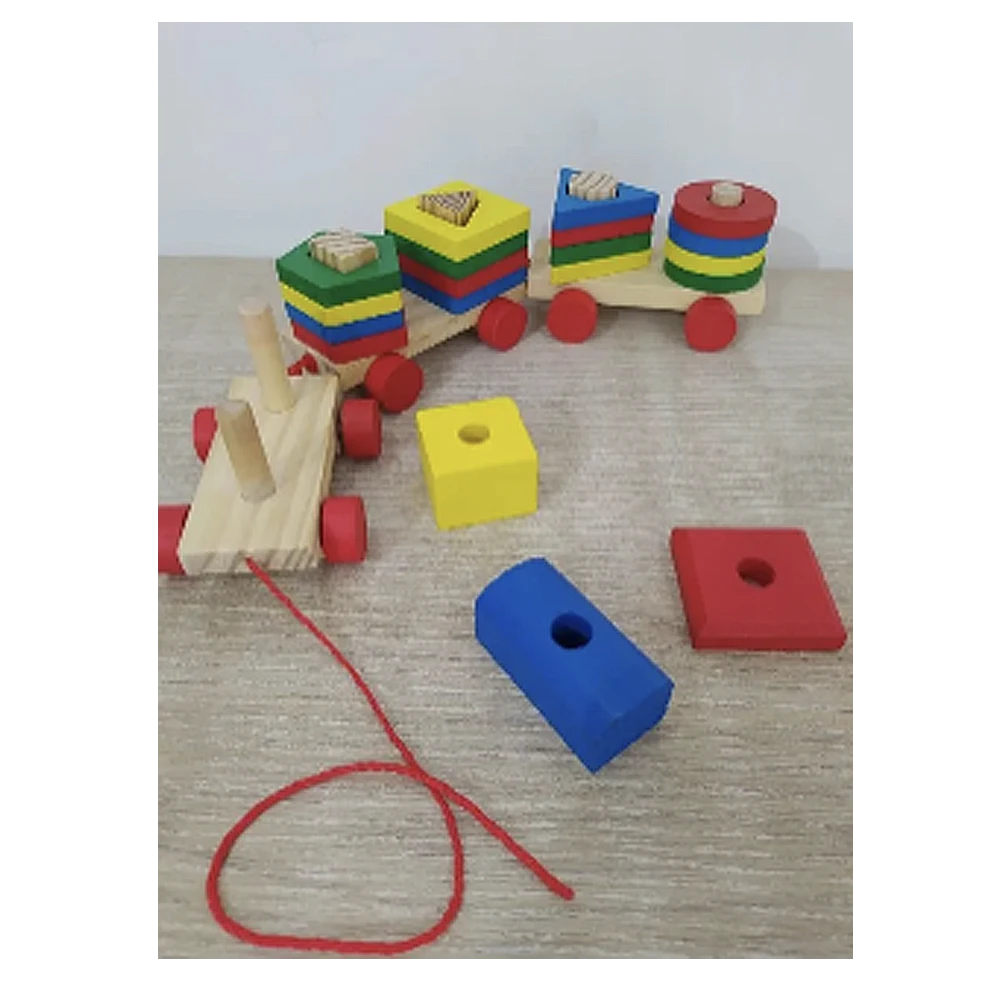 Tren que consta de 2 vagones, 1 locomotora y 19 piezas con figuras geométricas básicas con los colores primarios, incluida partes de la locomotora que también se puede desarmar. Medidas: Largo 40 centímetros. Ancho 8 centímetros Alto 7 centímetros. Te esperamos!!!